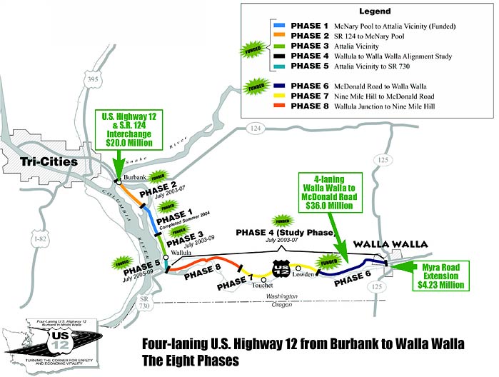 August 2004, the first phase of four-laning U.S. Highway 12